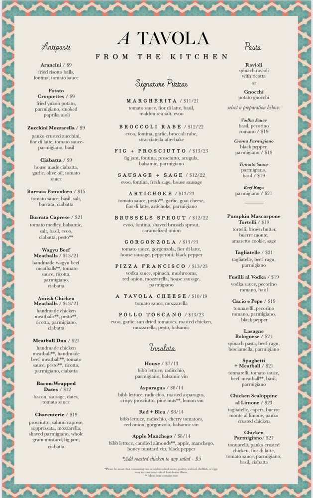 A Tavola Bar and Trattoria in Cincinnati offers a delightful Italian dining experience with a focus on wood-fired pizzas and authentic pasta dishes. This trendy yet casual restaurant provides a warm and inviting atmosphere, perfect for a dinner outing or a quick bite. Customers rave about the delicious burrata appetizer, beef ragu tagliatelle, and homemade sausage pizza. The diverse menu also caters to vegans and vegetarians with many options available. With attentive service, a full bar, and happy hour specials, A Tavola is a must-visit for Italian food enthusiasts. Don't miss out on the crispy prosciutto and pine nuts in the asparagus salad or the perfectly cooked chicken scallopine al limone. Whether you're dining in or taking out, A Tavola Bar and Trattoria promises a flavorful and memorable culinary experience.